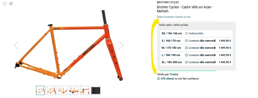 - Bike frame: mandatory attribute Taille Cadre
