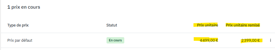 Veuillez mettre un état NEUF (que sur l'offre) et ajouter un prix unitaire et un prix remisé pour le prix de vente.
