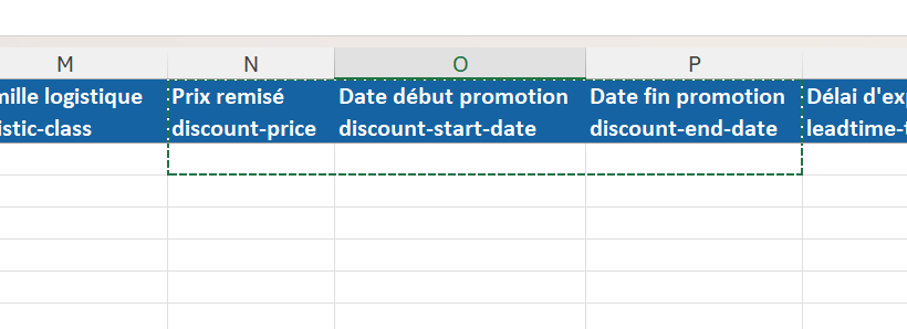 Pour faire apparaitre votre produit avec un prix remisé lors des périodes de soldes ou d'opérations commerciales (Black Friday) vous devez ajouter le type de promotion avec la valeur Promotion manuellement, via l'excel ou import d'offres automatique.