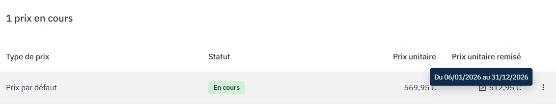 Vous avez 3 types d'informations liées au Prix sur votre offre: