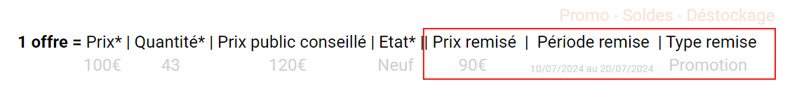 - Offer price: the sale price in euros (€), including VAT. It must be in Number format.